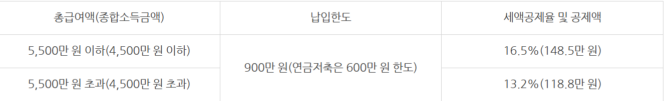 위의 표에서 900만원은 연금저축 +irp(퇴직연금)이에요.
